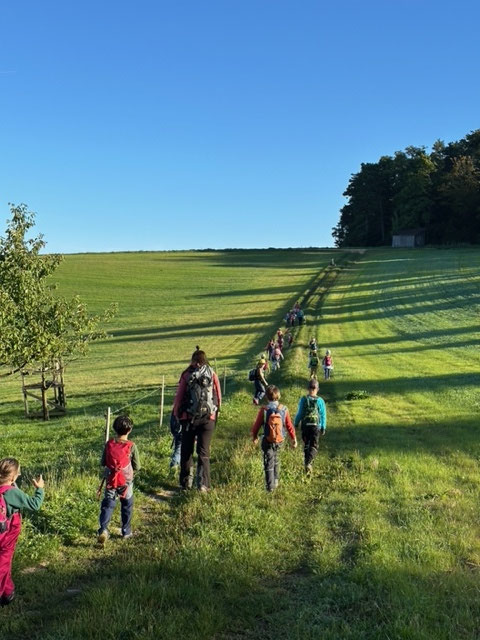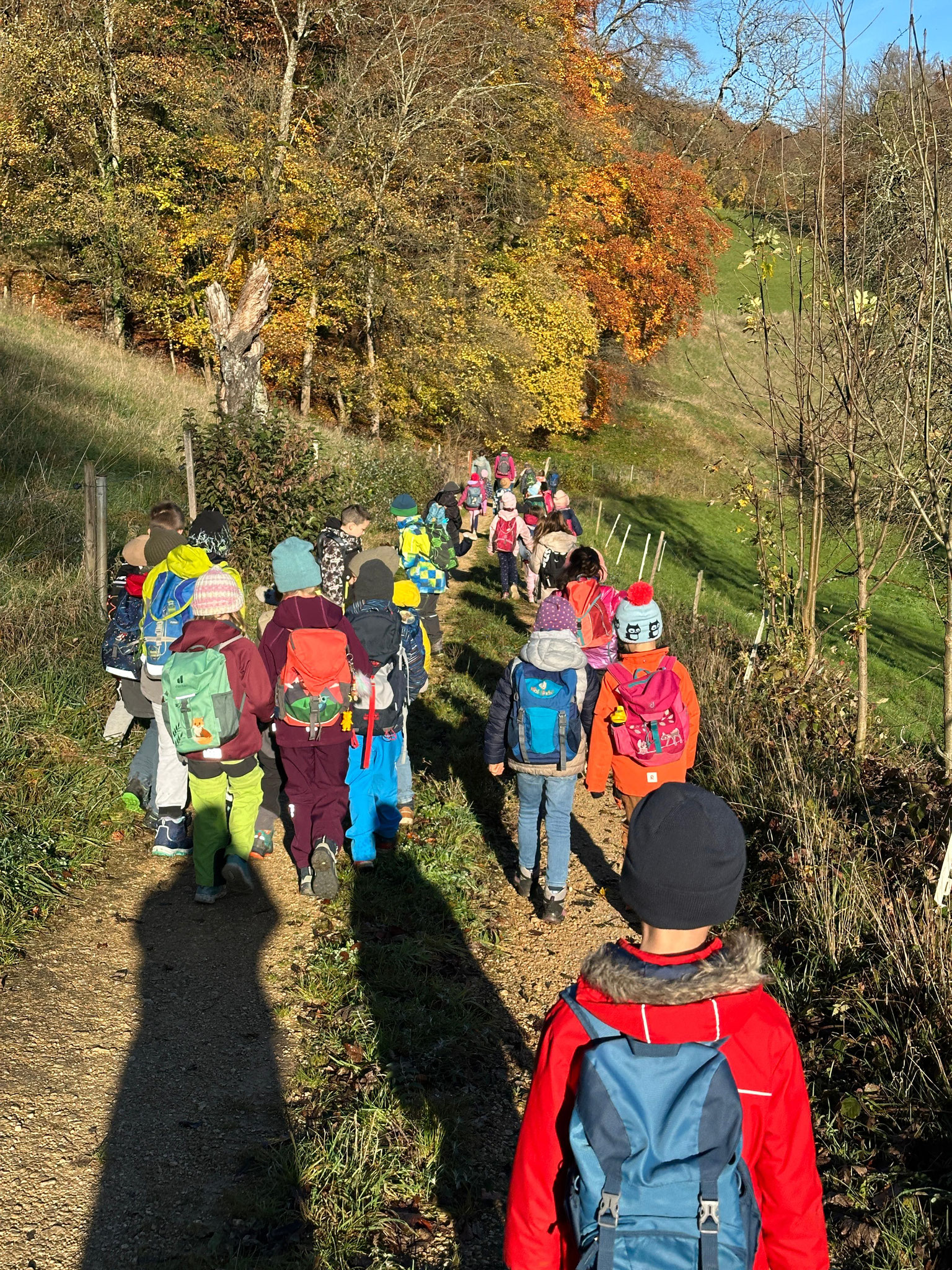 Nach einem erlebnisreichen Morgen ging es zum Glück nur noch bergab durch den herbstlichen Wald und die schöne Landschaft zurück zum Schulhaus.