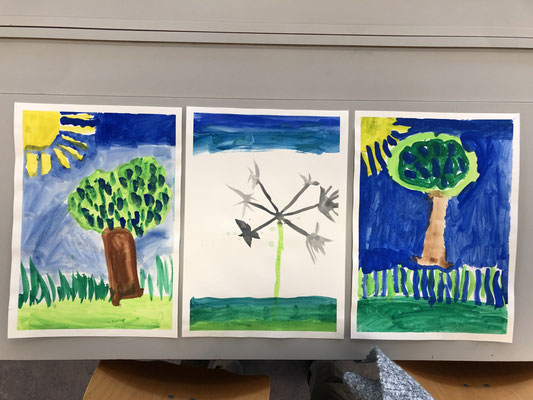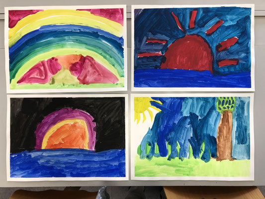 frei bei der Wahl des Motivs und liessen sich gegenseitig inspirieren beim nach links und nach rechts Schauen. So entstanden einige Regenbogenbilder, Landschaften mit Bäumen und Sonnenuntergänge.