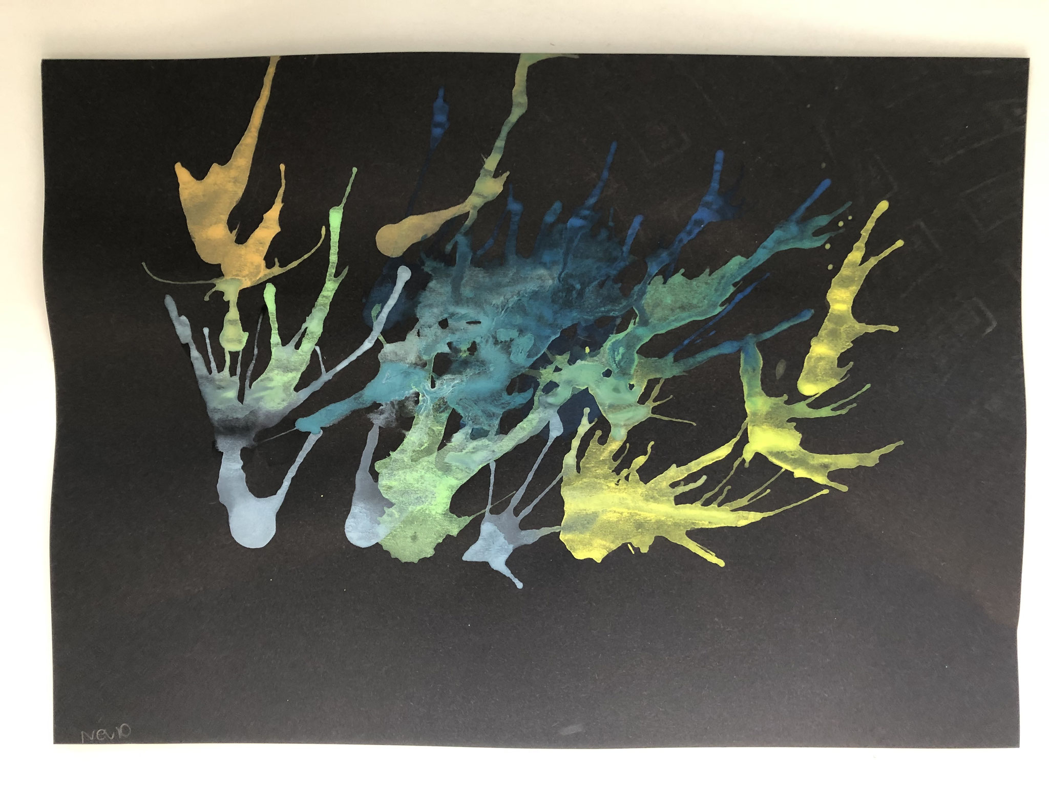 Im neuen Semester haben wir im Gestalten viel mit Farbe gespielt. Dabei lernten die Schülerinnen und Schüler ein paar spielerische Techniken kennen, mit denen auf Papier erstaunliche Effekte erzielt werden können.
