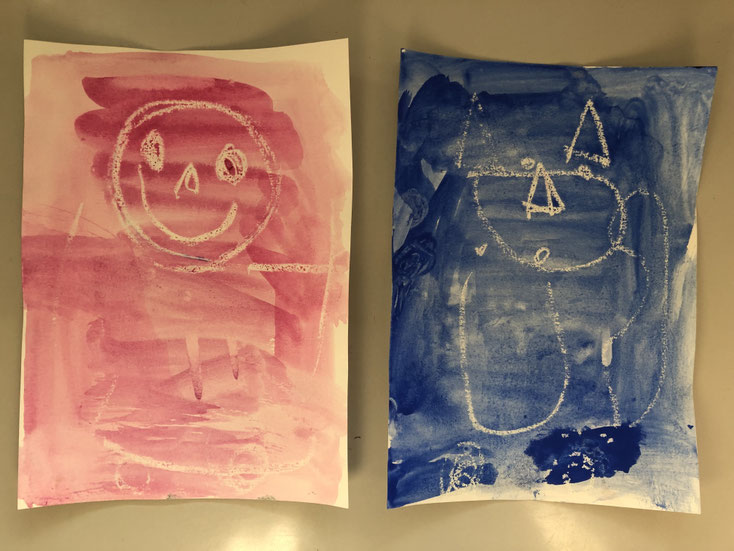 Wachsbild und jetzt sehe ich, was ich vorhin gezeichnet habe.