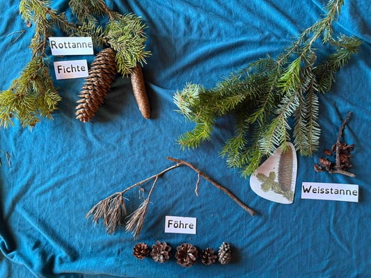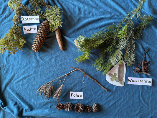 Zu welchem Nadelbaum gehört welcher Zapfen? Und weshalb stehen bei einigen Zapfen die Schuppen ab und andere sind glatt und die Schuppen sind geschlossen? Dieser Frage gingen wir Ende Woche nach und studierten unter dem Blätterdach des Nüechterwaldplatzes die verschiedenen Nadelbäume und Zapfen. Das war ganz schön schwierig. Doch wir müssen nicht schon alles wissen. Zum Glück werden wir immer wieder die Chance haben, draussen Schule zu machen. Dann können wir hoffentlich richtige Waldexpertinnen und Experten werden.