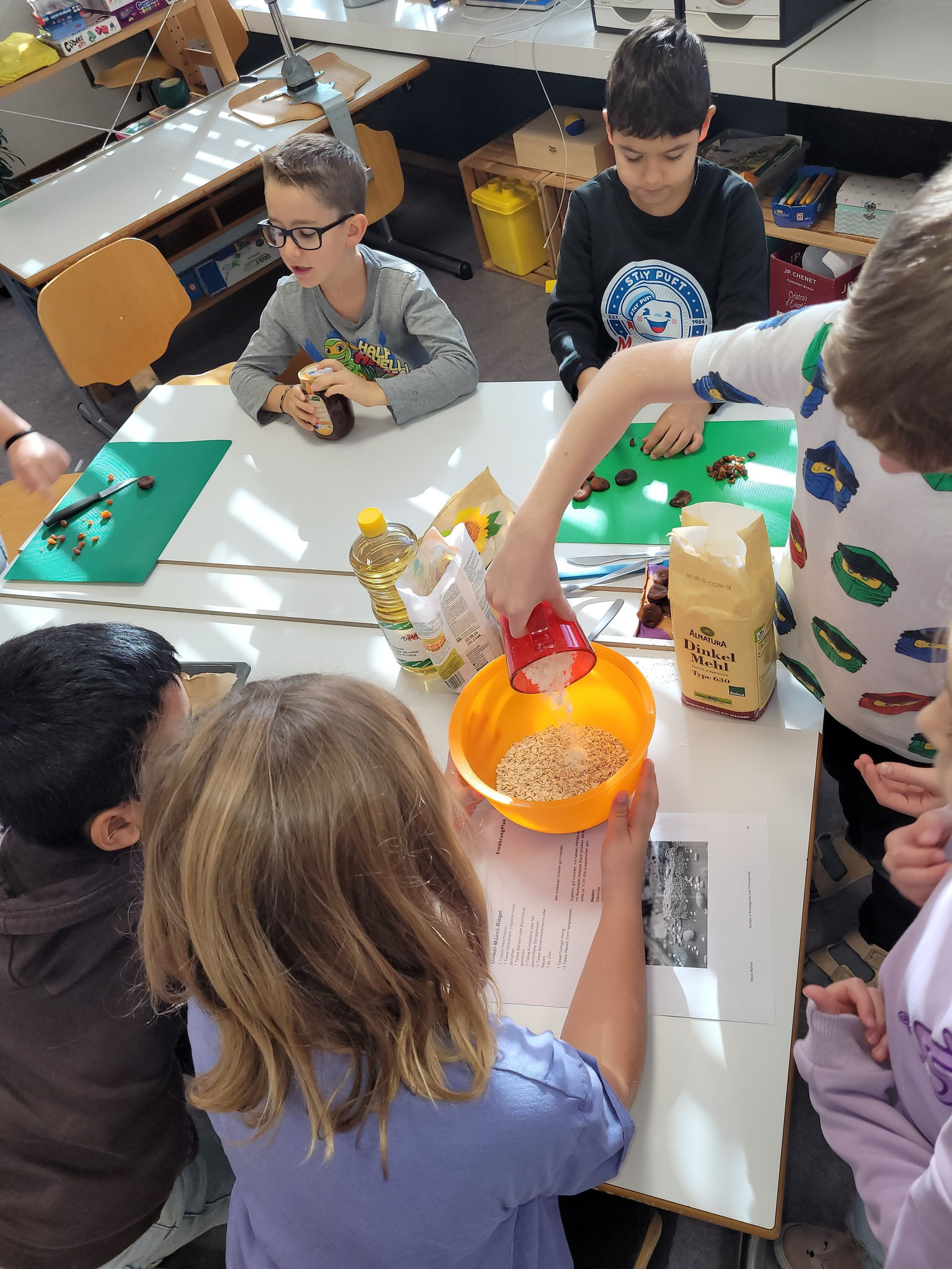 Seit den Herbstferien beschäftigen wir uns in der Schule mit dem Thema «Ernährung- Kochen in der Schule».