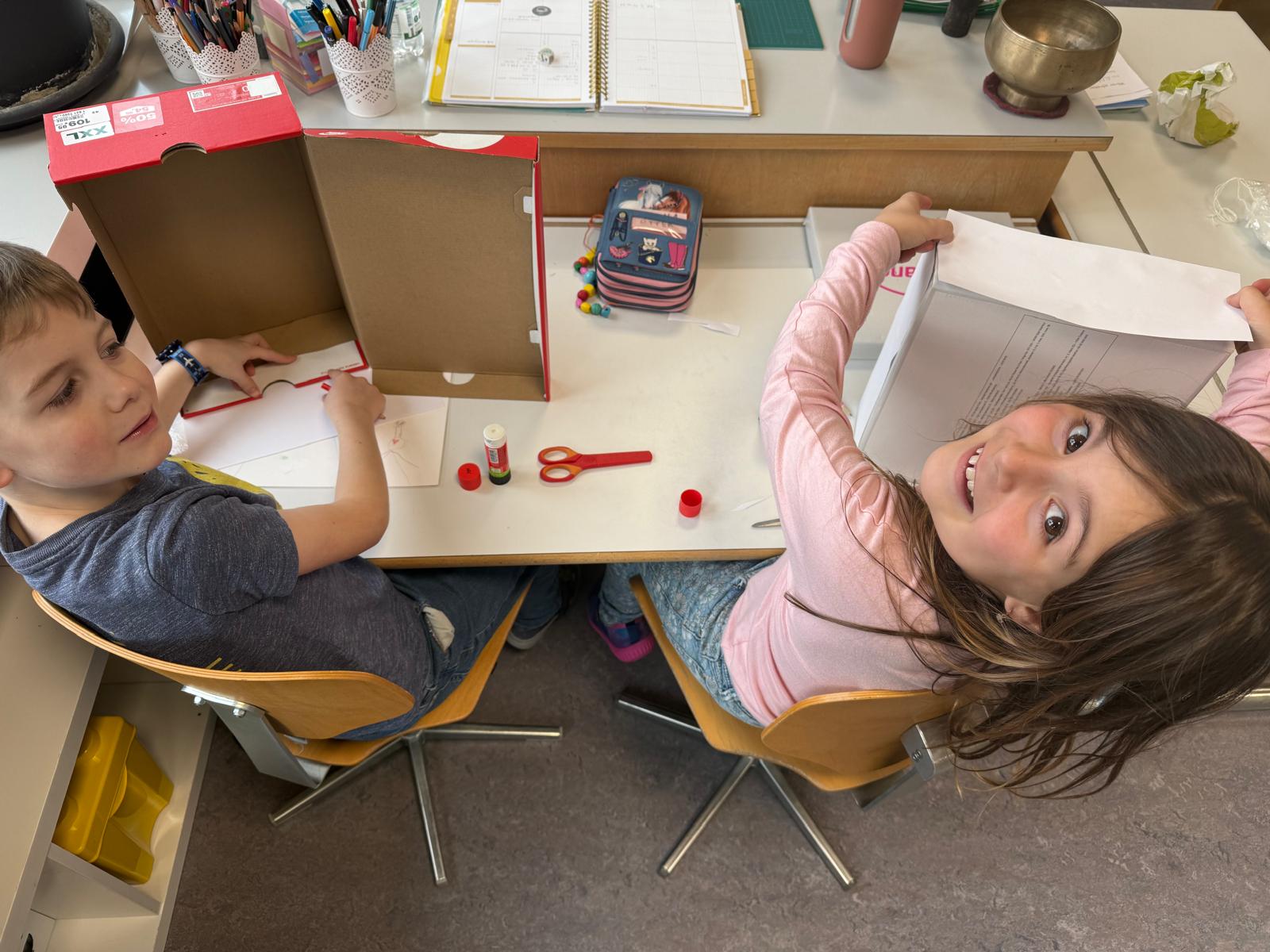 Zuerst haben wir die Geschichte gehört und bei jedem Tier, welches dazukam, stieg die Spannung, ob es denn auch noch Platz in dem Handschuh hat. Anschliessend ging es an die Gestaltung der