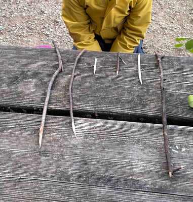 Der Ausflug zur Feuerstelle in der Nähe vom Chrotteweiher gefiel uns jedoch auch gut. Der Wind blies kalt und wir waren froh um das Feuer, an dem wir unsere Würste fürs Mittagessen brieten. Wir spielten im Wald, kletterten und schnitzten mit unseren Sackmessern. Alle schafften es, einen Haselast anzuspitzen. Darauf waren nicht wenige sehr stolz. Ausserdem lernten wir, warum die Linde Propellerfrüchtchen hat und bastelten auch gleich einen eigenen Papierpropeller.