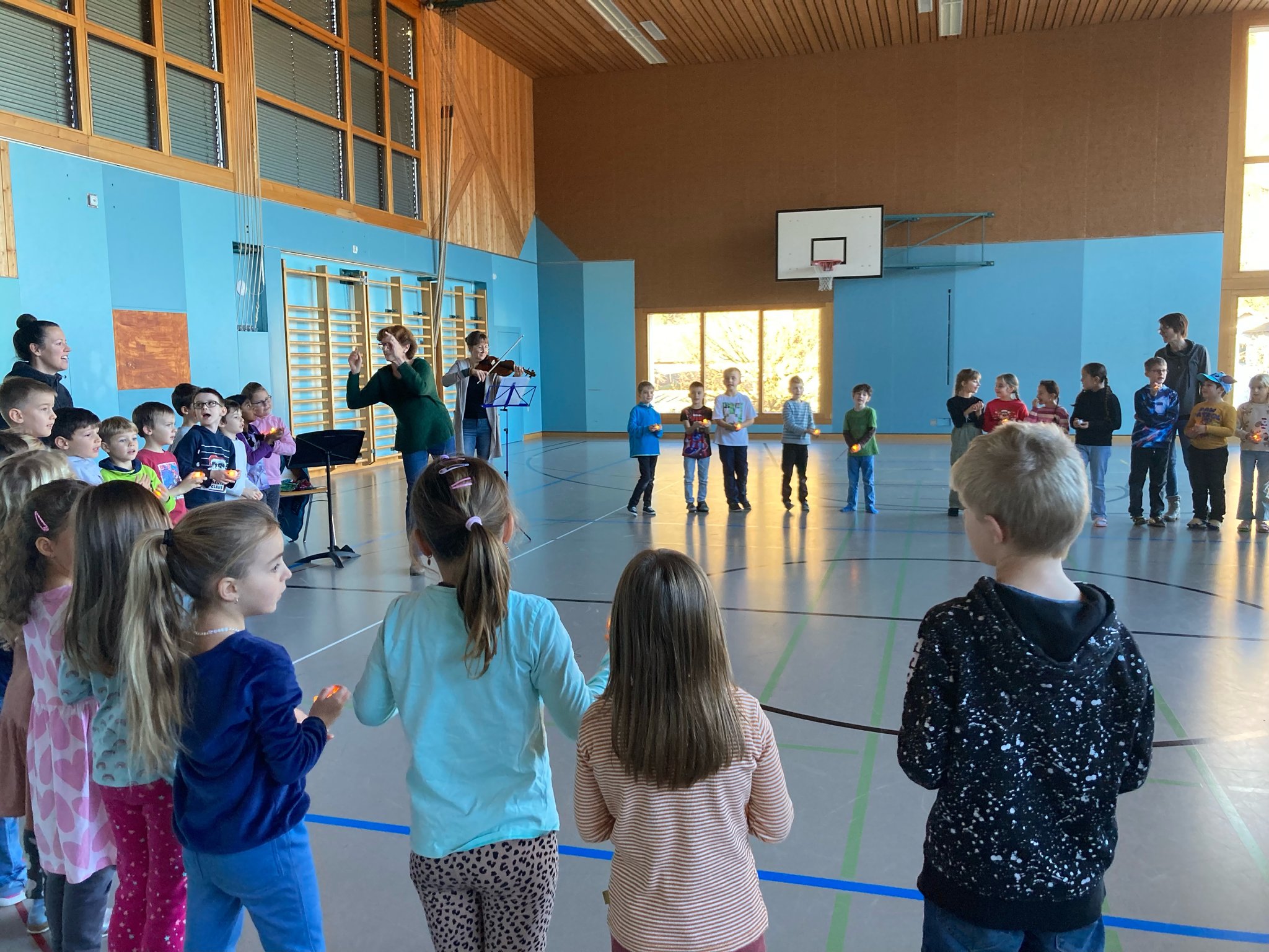 Die musikalische Begleitung übernahmen zwei Lehrpersonen mit Gitarre, Geige und Cello. Während des Singens hielten die Kinder ein kleines Kerzenlicht in der Hand und unterstützten damit mit Bewegungen den Gesang. Dieses sinnliche Weihnachtsprojekt war ein Höhepunkt der Adventszeit und eine schöne Einstimmung auf die bevorstehenden Feiertage.