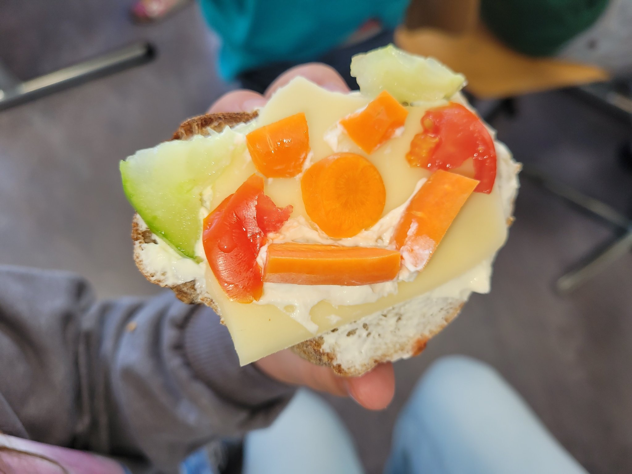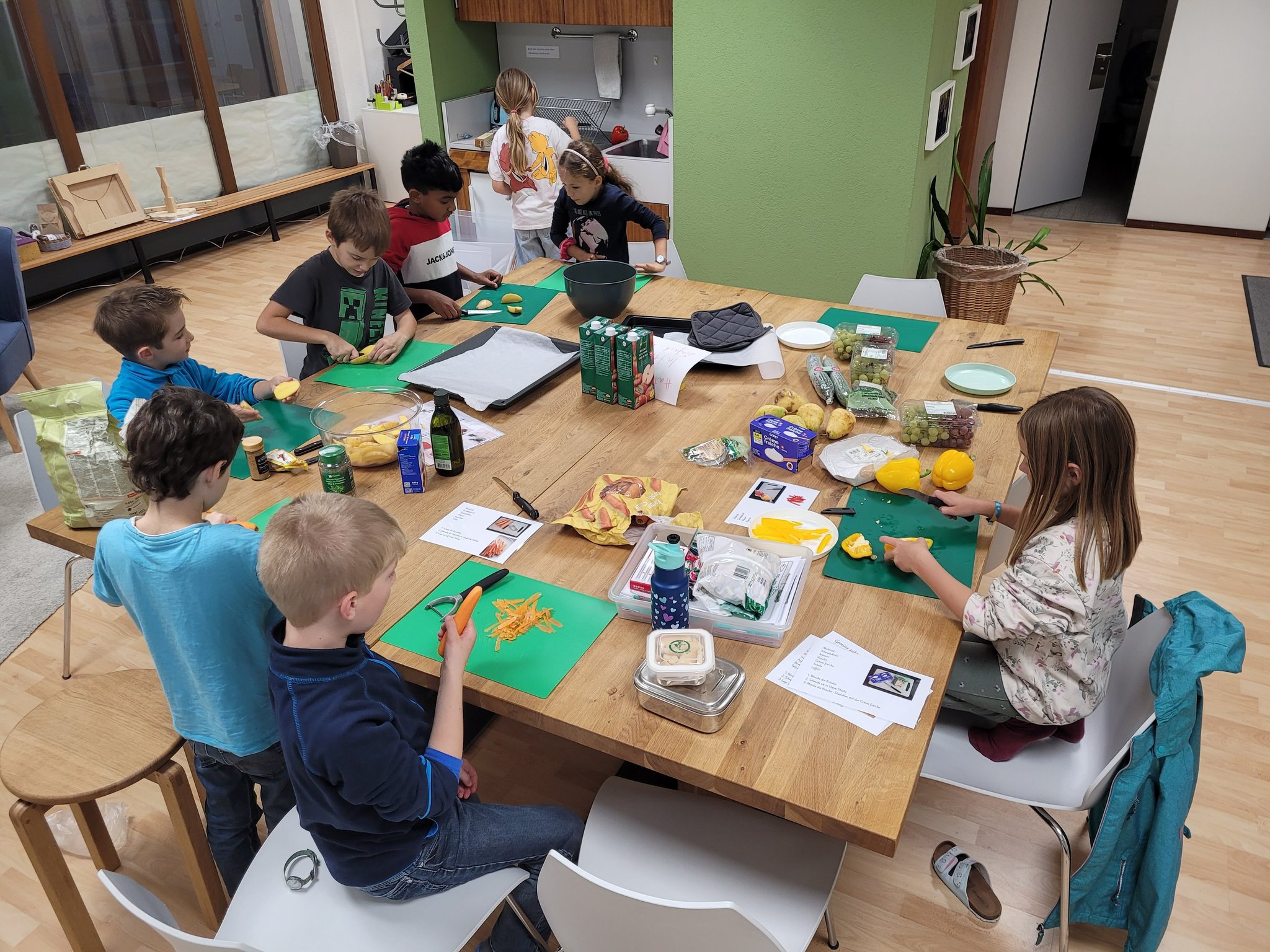 Natürlich haben wir auch gemeinsam gekocht und gegessen. Mit Gemüse, Käse und Brot haben wir uns unser eigenes Znüni hergestellt.