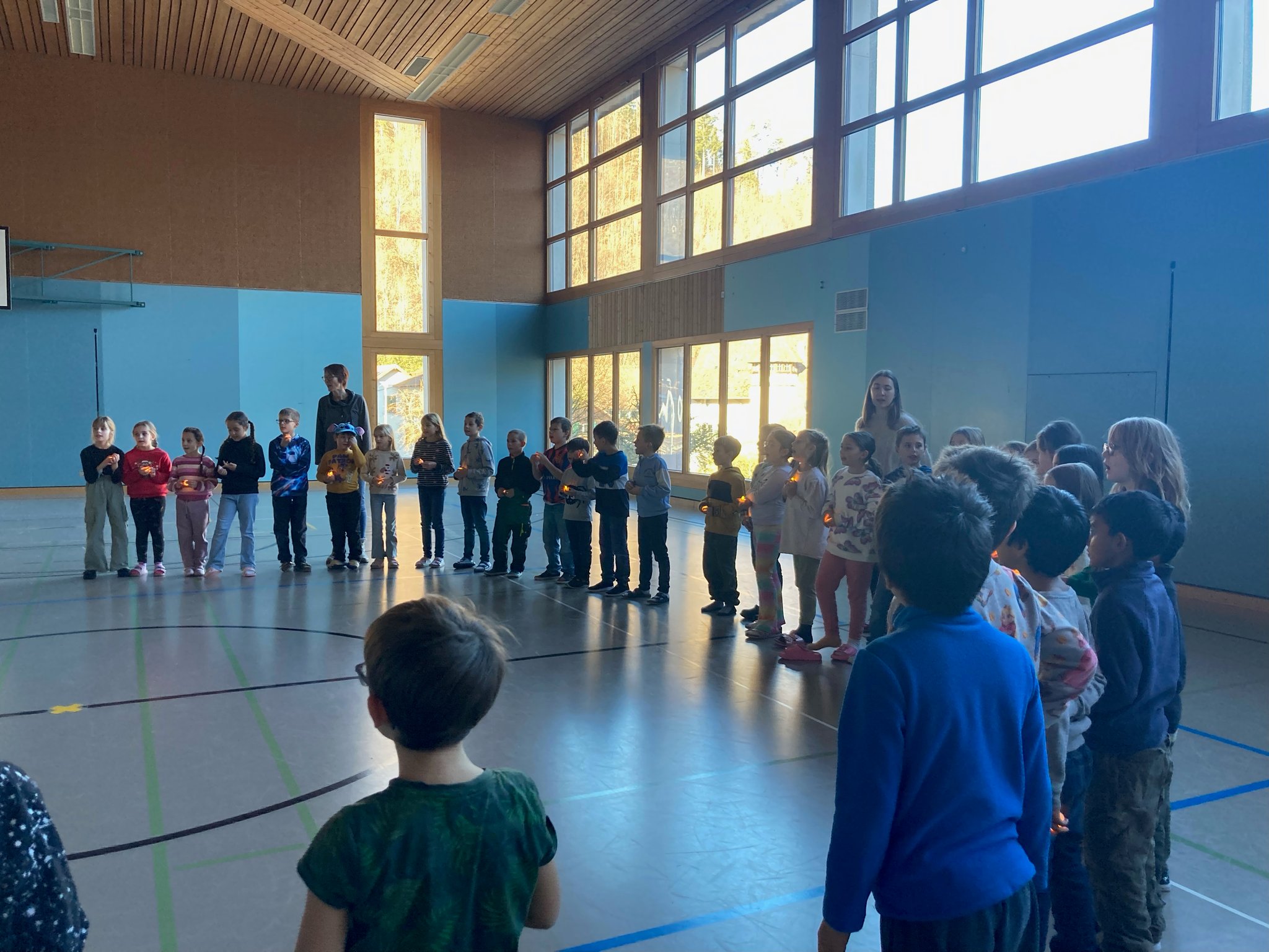 Im Dezember organisierten die Lehrpersonen der Unterstufe ein Weihnachtssingen, das sowohl die Stimmen der Kinder als auch das Gemeinschaftsgefühl stärkte. In der Adventszeit übten die Schülerinnen und Schüler fleissig drei Weihnachtslieder. In den letzten beiden Wochen vor den Weihnachtsferien trafen sich dann alle Klassen in der Turnhalle, um gemeinsam im Kreis zu singen. Besonders schön war, dass die Kinder einige Lieder im Kanon sangen, was für eine stimmungsvolle Atmosphäre sorgte.