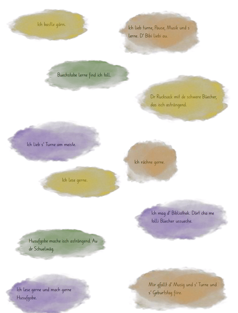 Im Bereich Deutsch sind wir fleissig am Schreiben und Lesen. Mittlerweile lesen wir nicht nur Wörter, sondern auch ganze Sätze. Es macht Freude zu sehen, wie viel die Kinder in der ersten Klasse