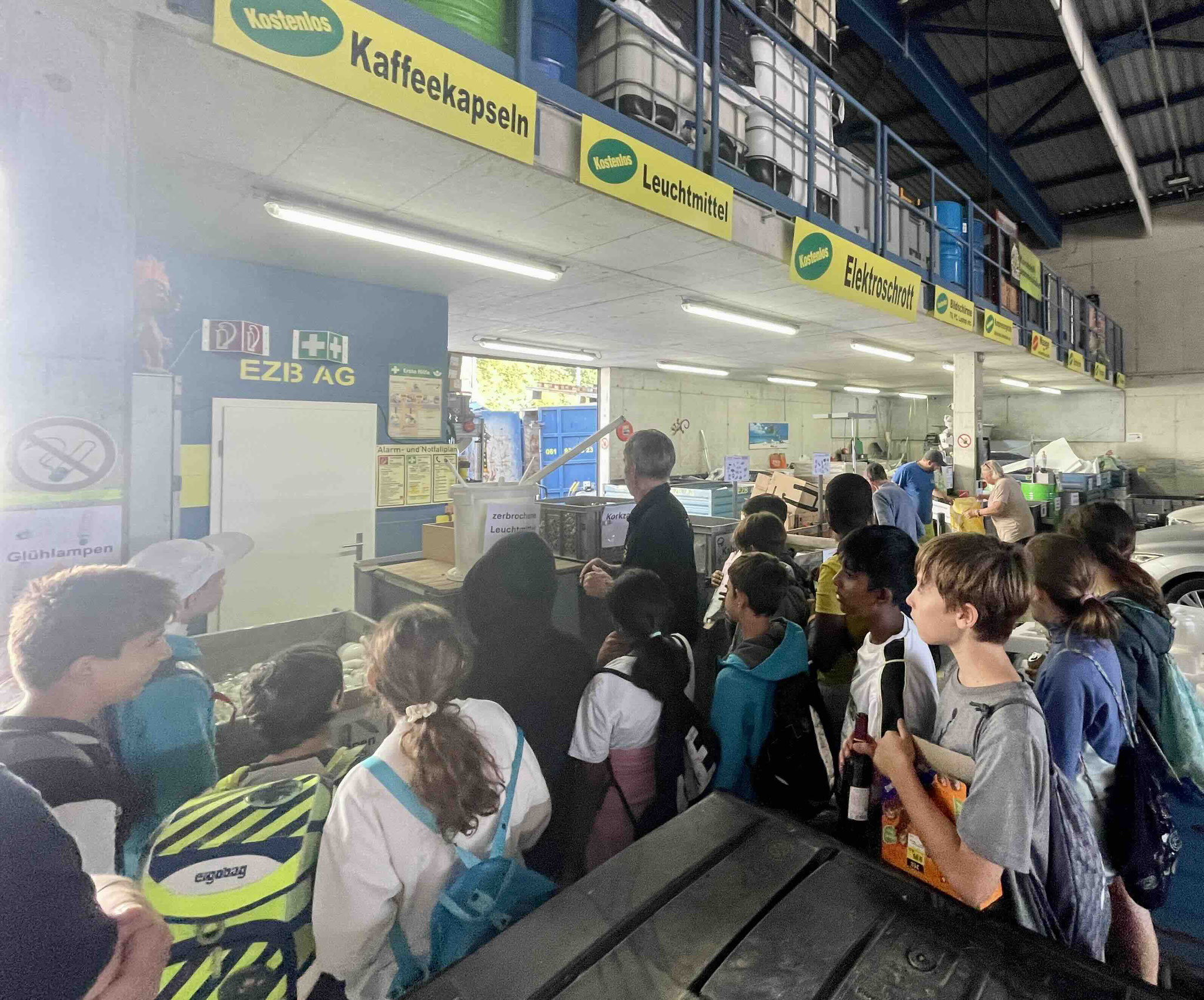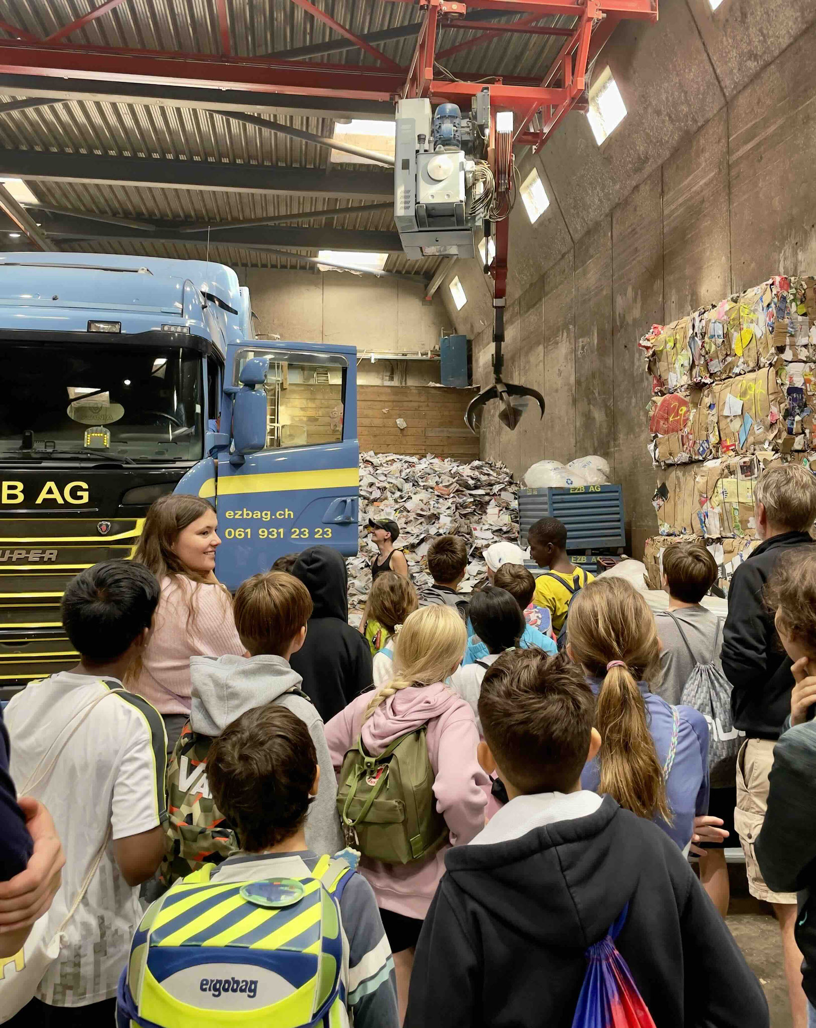 Die Klasse 6b unternahm am Dienstag, 26.8. einen spannenden Ausflug zum Entsorgungszentrum Bubendorf, um das Thema Recycling im Fachbereich NMG praktisch zu erleben. Die Schülerinnen und Schüler fuhren mit dem Fahrrad hin und zurück, was ihnen eine aktive und passend zum Thema, umweltfreundliche Anreise ermöglichte. Unter der fachkundigen Führung von Paul Nicolet erhielten wir eine anschauliche Einführung in die verschiedenen Schritte des Recyclings, von Sammlung über Sortierung bis hin zur Verarbeitung von Abfällen.