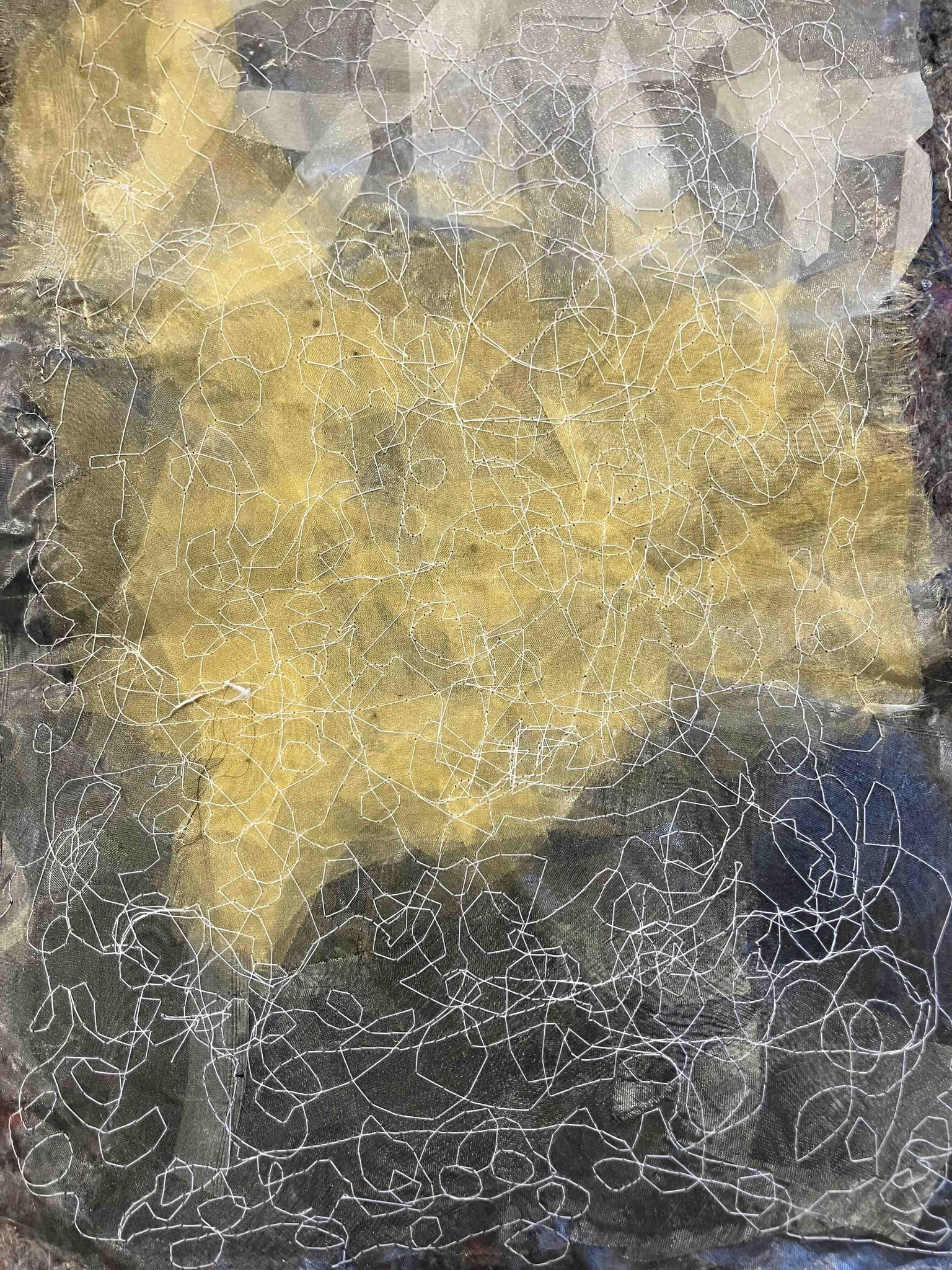 Es braucht etwas Übung und ein wenig Mut so wild drauflos zu nähen – aber bereits nach wenigen Minuten haben wir es schon voll im Griff. Wir nähen wild übereinander, bis der Stoff komplett übersäht ist von unserem Genähten.
